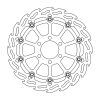 MOTO-MASTER® BREMSSCHEIBE FLAME FLOATING, 320MM, VORNE LINKSDie Bremsscheibe im Flame Design ist die perfekte Lösung für Fahrer, die nach mehr Bremskraft suchen. Schwimmend gelagert mit einem Aluminium-Innenträger und versehen mit dem innovativen Flame-Design bietet sie einen spürbaren Leistungszuwachs gegenüber der Original-Bremsscheibe. Das Flame-Design bietet eine optimale Kühlung und ein unübertroffen sanftes und besser berechenbares Bremsverhalten, das es dir ermöglicht, härter zu bremsen. MERKMALE: * Extrem leichtes Design * CNC-gefräster Innenring aus Flugzeugaluminium * Ultraleichte Edelstahl-Floater * Optimale Wärmeableitung und eine perfekte Reinigung der Bremsbelagoberfläche * Hervorragendes Feedback an den Fahrer * Gleichmässiger Bremsbelagkontakt während der gesamten Rotation der Scheibe sorgt für eine lineare Verzögerung * CNC-gefräst und beidseitig präzisionsgeschliffen für perfekte Passgenauigkeit und Ebenheit * Für beste Performance empfehlen wir die Verwendung von Moto-Master Bremsbelägen * Auch als Racing-Version für den professionellen Rennsport und den Einsatz auf der Rennstrecke erhältlich * Mit CH-ZULASSUNG erhältlich