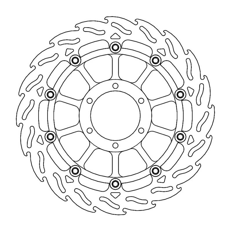 MOTO-MASTER® BREMSSCHEIBE FLAME FLOATING, 320MM, VORNE RECHTSDie Bremsscheibe im Flame Design ist die perfekte Lösung für Fahrer, die nach mehr Bremskraft suchen. Schwimmend gelagert mit einem Aluminium-Innenträger und versehen mit dem innovativen Flame-Design bietet sie einen spürbaren Leistungszuwachs gegenüber der Original-Bremsscheibe. Das Flame-Design bietet eine optimale Kühlung und ein unübertroffen sanftes und besser berechenbares Bremsverhalten, das es dir ermöglicht, härter zu bremsen. MERKMALE: * Extrem leichtes Design * CNC-gefräster Innenring aus Flugzeugaluminium * Ultraleichte Edelstahl-Floater * Optimale Wärmeableitung und eine perfekte Reinigung der Bremsbelagoberfläche * Hervorragendes Feedback an den Fahrer * Gleichmässiger Bremsbelagkontakt während der gesamten Rotation der Scheibe sorgt für eine lineare Verzögerung * CNC-gefräst und beidseitig präzisionsgeschliffen für perfekte Passgenauigkeit und Ebenheit * Für beste Performance empfehlen wir die Verwendung von Moto-Master Bremsbelägen * Auch als Racing-Version für den professionellen Rennsport und den Einsatz auf der Rennstrecke erhältlich * Mit CH-ZULASSUNG erhältlich
