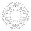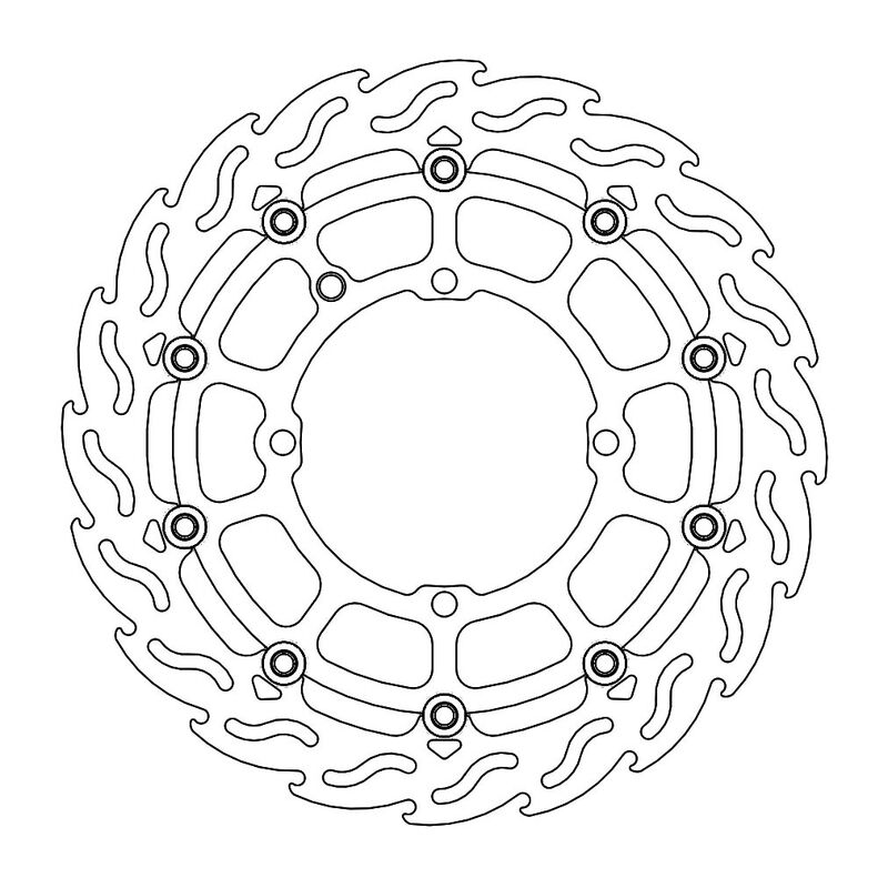 MOTO-MASTER® BREMSSCHEIBE FLAME SUPERMOTO RACING 320, 320MM, VORNEDie Moto-Master Flame Supermoto Racing Bremsscheibe wurde speziell für die Verwendung mit den Moto-Master 4-Kolben Supermoto Racing-Bremssätteln entwickelt. Der innere Träger der Bremsscheibe ist aus eloxiertem Aluminium gefertigt. Gegenüber den Standard Bremsscheiben ist die Dicke auf 5mm vergrössert worden. Das Flame-Design kombiniert eine überlegene, kontrollierbare Bremskraft mit einer optimalen Wärmeverteilung. MERKMALE: * Das Flame-Design hilft bei der Kühlung und Reinigung der Kontaktfläche * Lasergeschnitten, CNC-gefräst und beidseitig geschliffen für perfekte Passform und Planheit * Hochwertige Aussenringe aus Edelstahl, schwimmend * Ultraleichte Edelstahl-Floater * CNC-gefräster Innenträger aus 6082er Billet-Aluminium * Das Flame-Design sorgt für maximale Wärmedispersion * Optimale Kühlung * 5mm Dicke * Verformungsfest bis 540°C * Für beste Leistung empfehlen wir die Verwendung von Moto-Master Bremsbelägen * Oversize-Scheiben MÜSSEN mit einer Adapterhalterung verwendet werden! ABMESSUNGEN: * Aussendurchmesser: 320mm * Innendurchmesser: 120mm * Dicke: 5mm * Anzahl Montagelöcher: 4 * Durchmesser Montagelöcher: 10.4mm * Lochkreis: 135mm * Typ: Schwimmende Scheibe mit Alu-Innenträger * Bohrung Tachomagnet: Ja * Montageposition: linke Seite