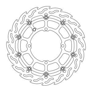 MOTO-MASTER® BREMSSCHEIBE FLAME SUPERMOTO RACING 320, 320MM, VORNEDie Moto-Master Flame Supermoto Racing Bremsscheibe wurde speziell für die Verwendung mit den Moto-Master 4-Kolben Supermoto Racing-Bremssätteln entwickelt. Der innere Träger der Bremsscheibe ist aus eloxiertem Aluminium gefertigt. Gegenüber den Standard Bremsscheiben ist die Dicke auf 5mm vergrössert worden. Das Flame-Design kombiniert eine überlegene, kontrollierbare Bremskraft mit einer optimalen Wärmeverteilung. MERKMALE: * Das Flame-Design hilft bei der Kühlung und Reinigung der Kontaktfläche * Lasergeschnitten, CNC-gefräst und beidseitig geschliffen für perfekte Passform und Planheit * Hochwertige Aussenringe aus Edelstahl, schwimmend * Ultraleichte Edelstahl-Floater * CNC-gefräster Innenträger aus 6082er Billet-Aluminium * Das Flame-Design sorgt für maximale Wärmedispersion * Optimale Kühlung * 5mm Dicke * Verformungsfest bis 540°C * Für beste Leistung empfehlen wir die Verwendung von Moto-Master Bremsbelägen * Oversize-Scheiben MÜSSEN mit einer Adapterhalterung verwendet werden! ABMESSUNGEN: * Aussendurchmesser: 320mm * Innendurchmesser: 120mm * Dicke: 5mm * Anzahl Montagelöcher: 4 * Durchmesser Montagelöcher: 10.4mm * Lochkreis: 135mm * Typ: Schwimmende Scheibe mit Alu-Innenträger * Bohrung Tachomagnet: Ja * Montageposition: linke Seite