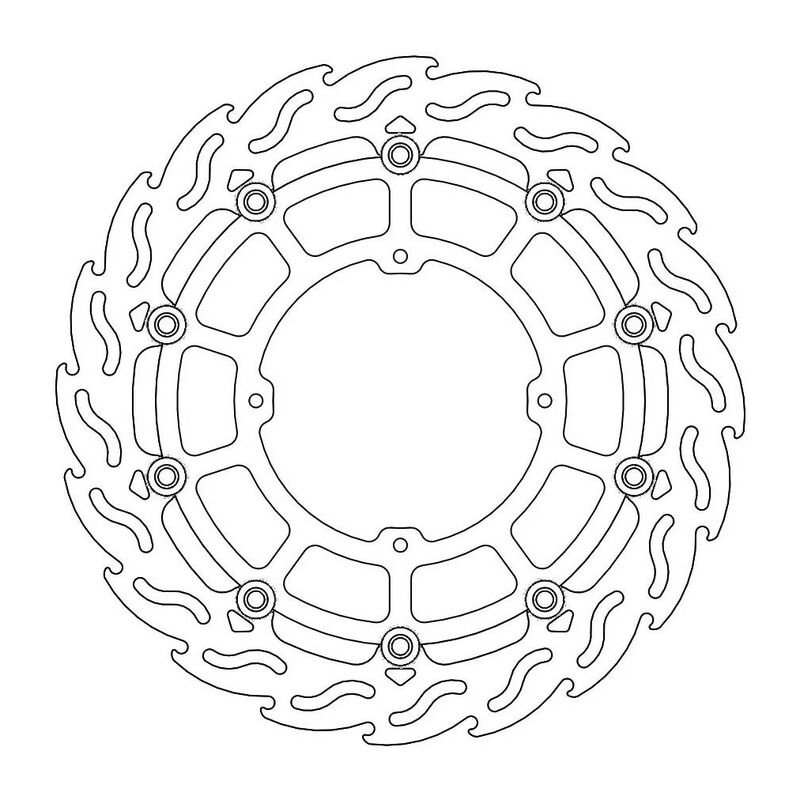 MOTO-MASTER® BREMSSCHEIBE FLAME SUPERMOTO RACING 320, 320MM, VORNEDie Moto-Master Flame Supermoto Racing Bremsscheibe wurde speziell für die Verwendung mit den Moto-Master 4-Kolben Supermoto Racing-Bremssätteln entwickelt. Der innere Träger der Bremsscheibe ist aus eloxiertem Aluminium gefertigt. Gegenüber den Standard Bremsscheiben ist die Dicke auf 5mm vergrössert worden. Das Flame-Design kombiniert eine überlegene, kontrollierbare Bremskraft mit einer optimalen Wärmeverteilung. MERKMALE: * Das Flame-Design hilft bei der Kühlung und Reinigung der Kontaktfläche * Lasergeschnitten, CNC-gefräst und beidseitig geschliffen für perfekte Passform und Planheit * Hochwertige Aussenringe aus Edelstahl, schwimmend * Ultraleichte Edelstahl-Floater * CNC-gefräster Innenträger aus 6082er Billet-Aluminium * Das Flame-Design sorgt für maximale Wärmedispersion * Optimale Kühlung * 5mm Dicke * Verformungsfest bis 540°C * Für beste Leistung empfehlen wir die Verwendung von Moto-Master Bremsbelägen * Oversize-Scheiben MÜSSEN mit einer Adapterhalterung verwendet werden! ABMESSUNGEN: * Aussendurchmesser: 320mm * Innendurchmesser: 118mm * Dicke: 5mm * Anzahl Montagelöcher: 4 * Durchmesser Montagelöcher: 6.3mm * Lochkreis: 134mm * Typ: Schwimmende Scheibe mit Alu-Innenträger * Bohrung Tachomagnet: Nein * Montageposition: linke Seite