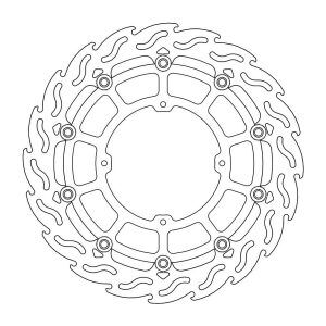 MOTO-MASTER® BREMSSCHEIBE FLAME SUPERMOTO RACING 320, 320MM, VORNEDie Moto-Master Flame Supermoto Racing Bremsscheibe wurde speziell für die Verwendung mit den Moto-Master 4-Kolben Supermoto Racing-Bremssätteln entwickelt. Der innere Träger der Bremsscheibe ist aus eloxiertem Aluminium gefertigt. Gegenüber den Standard Bremsscheiben ist die Dicke auf 5mm vergrössert worden. Das Flame-Design kombiniert eine überlegene, kontrollierbare Bremskraft mit einer optimalen Wärmeverteilung. MERKMALE: * Das Flame-Design hilft bei der Kühlung und Reinigung der Kontaktfläche * Lasergeschnitten, CNC-gefräst und beidseitig geschliffen für perfekte Passform und Planheit * Hochwertige Aussenringe aus Edelstahl, schwimmend * Ultraleichte Edelstahl-Floater * CNC-gefräster Innenträger aus 6082er Billet-Aluminium * Das Flame-Design sorgt für maximale Wärmedispersion * Optimale Kühlung * 5mm Dicke * Verformungsfest bis 540°C * Für beste Leistung empfehlen wir die Verwendung von Moto-Master Bremsbelägen * Oversize-Scheiben MÜSSEN mit einer Adapterhalterung verwendet werden! ABMESSUNGEN: * Aussendurchmesser: 320mm * Innendurchmesser: 118mm * Dicke: 5mm * Anzahl Montagelöcher: 4 * Durchmesser Montagelöcher: 6.3mm * Lochkreis: 134mm * Typ: Schwimmende Scheibe mit Alu-Innenträger * Bohrung Tachomagnet: Nein * Montageposition: linke Seite