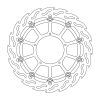 MOTO-MASTER® BREMSSCHEIBE FLAME SUPERMOTO STREET, 320MM, VORNEDie Moto-Master Flame Supermoto Street Bremsscheibe ist die ideale Lösung für den Fahrer, der eine RACE-ORIENTIERTE LEISTUNG wünscht, ohne auf ein komplettes Supermoto Racing Setup umsteigen zu müssen. MERKMALE: * Konzipiert für die Verwendung mit deinem serienmässigen Original Bremssattel (nicht kompatibel mit Supermoto Racing 4-Kolben-Rennsättel) * Die Flame Supermoto Street Scheiben sind 4mm dick und verwenden ein schwimmendes Design mit einer 320mm Scheibe * Der Flame-Aussenring ist mit 10 Leichtbau-Edelstahl-Floatern an einem Stahl-Innenträger montiert * Für eine optimale Leistung empfehlen wir die Verwendung von Moto-Master SinterPRO Racing GP Bremsbelägen * Das Supermoto Street Setup kann durch den Austausch des originalen Hauptzylinders gegen unseren Radial-Hauptzylinder und die Stahlflex-Bremsleitung noch leistungsfähiger gemacht werden * Mit CH-ZULASSUNG erhältlich ABMESSUNGEN: * Aussendurchmesser: 320mm * Innendurchmesser: 118mm * Dicke: 4mm * Anzahl Montagelöcher: 4 * Durchmesser Montagelöcher: 6.5mm * Lochkreis: 134mm * Typ: Schwimmende Scheibe mit Stahl-Innenträger * Bohrung Tachomagnet: Nein * Montageposition: linke Seite