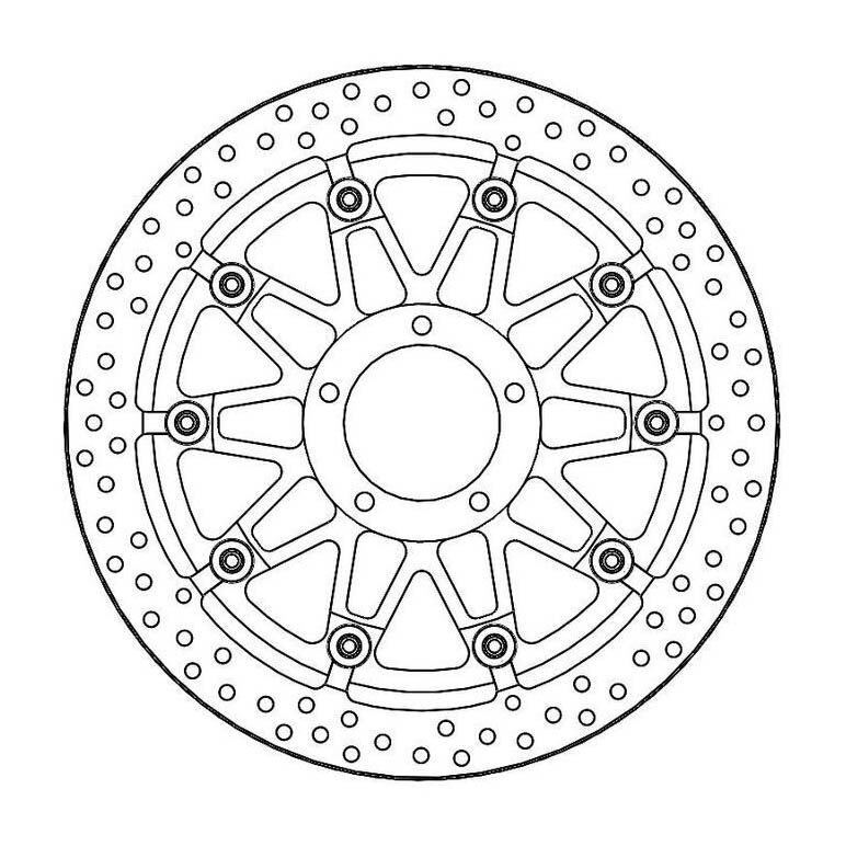 MOTO-MASTER® BREMSSCHEIBE HALO T-FLOATER 7.1, 330MM, VORNE Die ultimative Racing Bremsscheibe für den professionellen Rennfahrer. * Erhältlich in 6.0mm Dicke und in 7.1mm WSBK-Dicke * Das Halo-Aussenringdesign gewährleistet eine gleichmässige Wärmeverteilung bei hoher thermischer Belastung, während die Kontaktfläche des Bremsbelags gleichmässig gereinigt wird. * Die Dicke des Aussenrings beträgt 6.0mm und verfügt über einen zusätzlichen Kühlschlitz zwischen Träger und Bremsscheibe. * Der lasergeschnittene und präzisionsgeschliffene Aussenring ist an einem schwarz eloxierten, CNC-gefrästen Träger aus Flugzeugaluminium befestigt * Die T-Floater Pin-Slot Konstruktion ermöglicht eine hohe mechanische Belastung bei minimalem Verschleiss. * Das T-Floater-System ist dank der speziell entwickelten, hart eloxierten Aluminium-Floater sehr leicht. NICHT FÜR DEN ÖFFENTLICHEN STRASSENVERKEHR GEEIGNET. Racing bremsscheibe,road racing bremse,professional racing,strassenrennen bremsscheibe,t floater,t-schwimmer,fim zugelassen,fim homologiert,fim superbike homologiert,runde bremsscheibe,halo rotor,halo disc,disque halo,disco halo,disco rotondo,disque ronde,round brake rotor,gelochte bremsscheibe,schwimmende Bremsscheibe,schwimmend gelagerte Bremsscheibe,vorderbremse,front brake rotor,frein avant,disque avant,freno anteriore,disco freno flottante,disque frein flottant,floating rotor,disque deux pieces,disco freno flottante,disque frein flottant,floating rotor,disque deux pieces,schwimmend gelagerte Bremsscheibe,zweiteilige bremsscheibe,schwimmende scheibe,2teilige Bremsscheibe,bremscheibe,scheibenbremse,bremsteller,brake disc,disque frein,disco freno,brake rotor,mx bremsscheibe,motorrad bremsscheibe,brämsschiibe,brakingdisc,brakingdisque,brämsschiibä Passend auf: DUCATI 1098 1198 DESMOSEDICI 990 RR PANIGALE 1199 PANIGALE 1199 RACING PANIGALE 1199 S PANIGALE SUPERBIKE 1299 PANIGALE SUPERBIKE 1299 S S 1098 S 1098 TRICOLORE S 1198 STREETFIGHTER 1100 V4 SUPERBIKE 1198 / S SUPERBIKE PANIGALE 1000 V4 R SUPERBIKE PANIGALE 1100 V4 SUPERBIKE PANIGALE 1100 V4 RACING SUPERBIKE PANIGALE 1100 V4 S SUPERBIKE PANIGALE 1100 V4 SPECIALE SUPERLEGGERA 1299