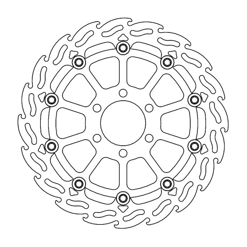 MOTO-MASTER® BREMSSCHEIBE FLAME FLOATING, 280 MM, VORNE LINKS Die Bremsscheibe im Flame Design ist die perfekte Lösung für Fahrer, die nach mehr Bremskraft suchen. Schwimmend gelagert mit einem Aluminium-Innenträger und versehen mit dem innovativen Flame-Design bietet sie einen spürbaren Leistungszuwachs gegenüber der Original-Bremsscheibe. Das Flame-Design bietet eine optimale Kühlung und ein unübertroffen sanftes und besser berechenbares Bremsverhalten, das es dir ermöglicht, härter zu bremsen. BACKYARD RACING DETAILS: * Extrem leichtes Design * CNC-gefräster Innenring aus Flugzeugaluminium * Ultraleichte Edelstahl-Floater * Optimale Wärmeableitung und eine perfekte Reinigung der Bremsbelagoberfläche * Hervorragendes Feedback an den Fahrer * Gleichmässiger Bremsbelagkontakt während der gesamten Rotation der Scheibe sorgt für eine lineare Verzögerung * CNC-gefräst und beidseitig präzisionsgeschliffen für perfekte Passgenauigkeit und Ebenheit * Für beste Performance empfehlen wir die Verwendung von Moto-Master Bremsbelägen * Auch als Racing-Version für den professionellen Rennsport und den Einsatz auf der Rennstrecke erhältlich * Mit CH-ZULASSUNG erhältlich