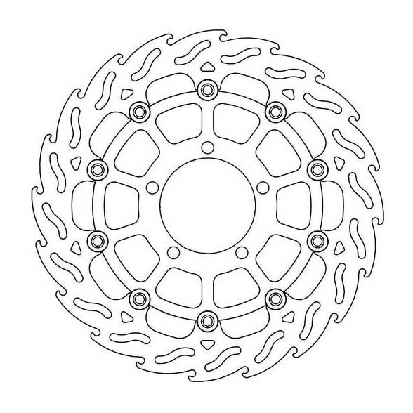 MOTO-MASTER® BREMSSCHEIBE FLAME FLOATING, 305 MM, VORNE LINKS Die Bremsscheibe im Flame Design ist die perfekte Lösung für Fahrer, die nach mehr Bremskraft suchen. Schwimmend gelagert mit einem Aluminium-Innenträger und versehen mit dem innovativen Flame-Design bietet sie einen spürbaren Leistungszuwachs gegenüber der Original-Bremsscheibe. Das Flame-Design bietet eine optimale Kühlung und ein unübertroffen sanftes und besser berechenbares Bremsverhalten, das es dir ermöglicht, härter zu bremsen. BACKYARD RACING DETAILS: * Extrem leichtes Design * CNC-gefräster Innenring aus Flugzeugaluminium * Ultraleichte Edelstahl-Floater * Optimale Wärmeableitung und eine perfekte Reinigung der Bremsbelagoberfläche * Hervorragendes Feedback an den Fahrer * Gleichmässiger Bremsbelagkontakt während der gesamten Rotation der Scheibe sorgt für eine lineare Verzögerung * CNC-gefräst und beidseitig präzisionsgeschliffen für perfekte Passgenauigkeit und Ebenheit * Für beste Performance empfehlen wir die Verwendung von Moto-Master Bremsbelägen * Auch als Racing-Version für den professionellen Rennsport und den Einsatz auf der Rennstrecke erhältlich * Mit CH-ZULASSUNG erhältlich