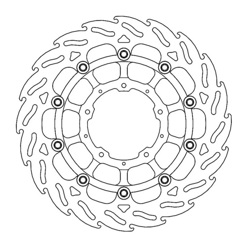 MOTO-MASTER® BREMSSCHEIBE FLAME FLOATING, 310 MM, VORNE RECHTS Die Bremsscheibe im Flame Design ist die perfekte Lösung für Fahrer, die nach mehr Bremskraft suchen. Schwimmend gelagert mit einem Aluminium-Innenträger und versehen mit dem innovativen Flame-Design bietet sie einen spürbaren Leistungszuwachs gegenüber der Original-Bremsscheibe. Das Flame-Design bietet eine optimale Kühlung und ein unübertroffen sanftes und besser berechenbares Bremsverhalten, das es dir ermöglicht, härter zu bremsen. BACKYARD RACING DETAILS: * Extrem leichtes Design * CNC-gefräster Innenring aus Flugzeugaluminium * Ultraleichte Edelstahl-Floater * Optimale Wärmeableitung und eine perfekte Reinigung der Bremsbelagoberfläche * Hervorragendes Feedback an den Fahrer * Gleichmässiger Bremsbelagkontakt während der gesamten Rotation der Scheibe sorgt für eine lineare Verzögerung * CNC-gefräst und beidseitig präzisionsgeschliffen für perfekte Passgenauigkeit und Ebenheit * Für beste Performance empfehlen wir die Verwendung von Moto-Master Bremsbelägen * Auch als Racing-Version für den professionellen Rennsport und den Einsatz auf der Rennstrecke erhältlich * Mit CH-ZULASSUNG erhältlich
