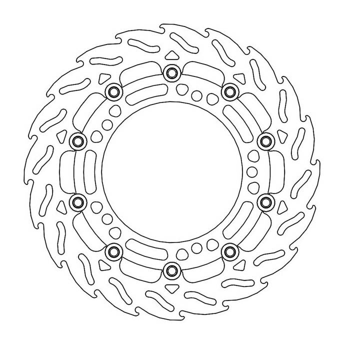 MOTO-MASTER® BREMSSCHEIBE FLAME RACING 5.5 MM, 300 MM, VORNE RECHTS Die Bremsscheibe im Flame Design ist die perfekte Lösung für Fahrer, die nach mehr Bremskraft suchen. Schwimmend gelagert mit einem Aluminium-Innenträger und versehen mit dem innovativen Flame-Design bietet sie einen spürbaren Leistungszuwachs gegenüber der Original-Bremsscheibe. Das Flame-Design bietet eine optimale Kühlung und ein unübertroffen sanftes und besser berechenbares Bremsverhalten, das es dir ermöglicht, härter zu bremsen. Die Racing Ausführung mit 5.5 mm Wandstärke macht sie widerstandsfähiger gegenüber extremen Temparaturen. BACKYARD RACING DETAILS: * 5.5 mm dick * Extrem leichtes Design * CNC-gefräster Innenring aus Flugzeugaluminium * Ultraleichte Edelstahl-Floater * Optimale Wärmeableitung und eine perfekte Reinigung der Bremsbelagoberfläche * Hervorragendes Feedback an den Fahrer * Gleichmässiger Bremsbelagkontakt während der gesamten Rotation der Scheibe sorgt für eine lineare Verzögerung * CNC-gefräst und beidseitig präzisionsgeschliffen für perfekte Passgenauigkeit und Ebenheit * Für beste Performance empfehlen wir die Verwendung von Moto-Master Bremsbelägen * Mit CH-ZULASSUNG erhältlich