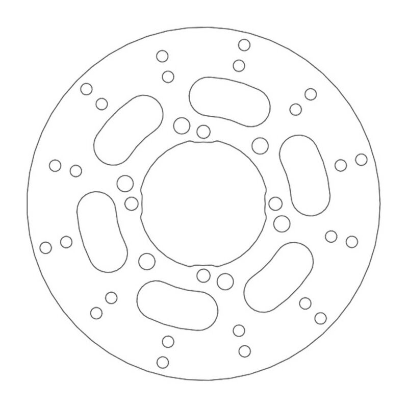 MOTO-MASTER® BREMSSCHEIBE HALO ATV, 227 MM, VORNE * ATV-Bremsscheiben müssen mechanischen und thermischen Belastungen standhalten, während sie vollständig Sand, Schlamm und Steinen ausgesetzt sind * Die Halo-Bremsscheiben sind aus hochwertigem, speziell gehärtetem Stahl gefertigt für extrem niedrigen Verschleiss und sehr hohe Bremsleistung * Sie sind Präzisionslaser geschnitten, CNC gebohrt und doppelgeschliffen für perfekte Passform und Ebenheit * Das Lochmuster in der Berührungsfläche ist für die Kühlung und Scheibenreinigung ausgelegt, um Wasser und Schmutz fern zu halten * Gebrauch: Für Langstreckenrennen unter schwierigen Bedingungen * Mit CH-ZULASSUNG erhältlich ABMESSUNGEN: * Aussendurchmesser: 227 mm * Innendurchmesser: 89 mm * Dicke: 4 mm * Anzahl Montagelöcher: 4 * Durchmesser Montagelöcher: 8.5 mm * Lochkreis: 104.5 mm * Typ: Starre Scheibe * Bohrung Tachomagnet: Nein * Montageposition: Omnidirektional