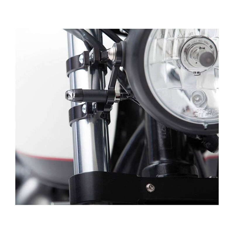 MOTOGADGET MO.BLAZE PIN Der mo.blaze pin von motogadget setzt neue Maßstäbe bei den Anbaublinkern mit Power-LED-Technik. Seine winzigen Abmessungen und das reduzierte Design lassen ihn am Fahrzeug beinahe verschwinden. Sobald er leuchtet, ist er durch die IntensiLED Technology extrem leuchtstark und definitiv nicht mehr zu übersehen. Zusätzlich sorgt die patentierte TranzLight Technology (TLT) mit einem großen Abstrahlwinkel für beste Sichtbarkeit und Sicherheit. Der Anbaublinker hat eine ECE ZULASSUNG als vorderer und hinterer Fahrtrichtungsanzeiger. Das Aluminiumgehäuse ist CNC gedreht und in den Ausführungen schwarz eloxiert oder hochglanz poliert lieferbar. Der Blinker kann wie jeder übliche LED-Blinker mit Lastwiderständen oder allen unseren lastunabhängigen Blinkrelais (mo.flash, mo.wave, mo.stop, mo.relay+) betrieben werden. VORTEILE : * Absolut einzigartiges, neues Design und Funktionsprinzip (Lichtlenkung durch TranzLight Technology) * Sehr filigrane Erscheinung durch transparenten Glaskörper und sehr kleinen Alusockel * Höchste Leuchtkraft durch modernste Hochleistungs-LED-Technik (IntensiLED) * Elektronischer Spannungsaufbereitung durch 330kHz getaktete, IC gesteuerte Konstantstromquelle und sichere Schutzelektronik * Sehr helles Licht in Abstrahlrichtung, gut sichtbares Licht nach fast allen Seiten LIEFERUMFANG : * Einzelner Anbaublinker mo.blaze pin mit Gewinde M8 * Sehr filigrane Erscheinung durch transparenten Glaskörper und sehr kleinen Alusockel * Mutter M8 * Installationsanleitung SPEZIFIKATIONEN : * Gesamtlänge mit Gewinde: 38.5 mm * Länge ohne Anbaugewinde: 19.5 mm * Grösster Durchmesser: 16 mm * Kabellänge: ca. 100 cm * Gewicht: ca. 12 g * Befestigung: M8 Gewindebolzen * Leistungsaufnahme: ca. 3 Watt * CH-HOMOLOGIERT / ECE-GEPRÜFT Montage Position und ECE-geprüft: vorne und hinten motogadget,mo.blaze,blinker,tuning blinker,nachrüst blinker,umbau blinker,caferacer blinker,custom blinker,singnal lights,clignotant,lampeggiatore,