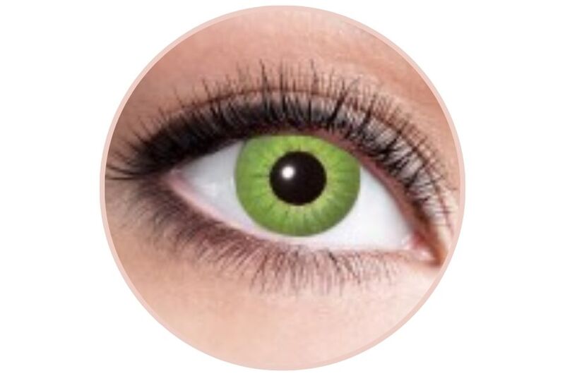 Die Mystery Lens in der Farbe"electro green 810", sind schaurig auffallende, getönte, weiche Motiv-Monatslinsen ohne Korrektur. Die farbigen Kontaktlinsen gibt es zudem in verschiedenen Motiven,die zu unterschiedlichen Kostümen passen, besonders toll zu Halloween.