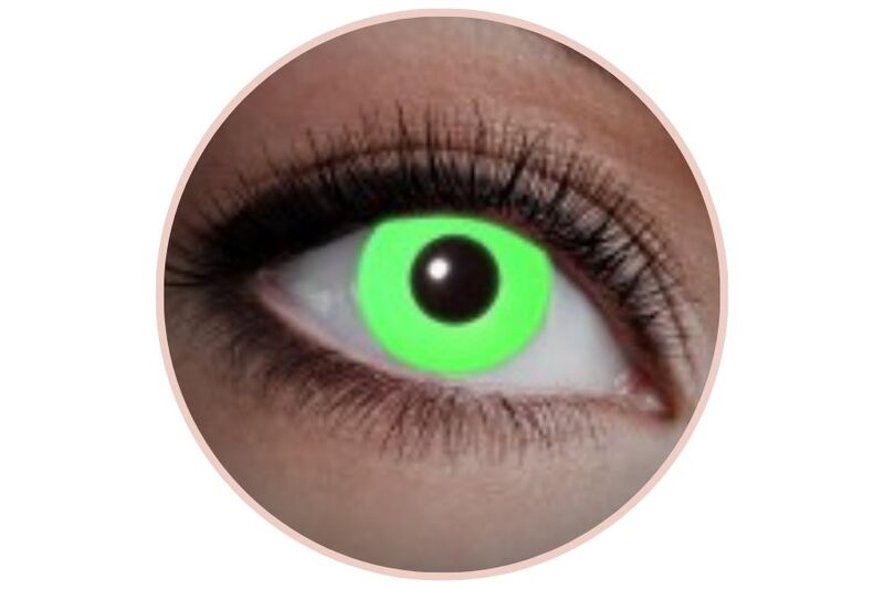 Die Mystery Lens in der Farbe"electro green 810", sind schaurig auffallende, getönte, weiche Motiv-Monatslinsen ohne Korrektur. Die farbigen Kontaktlinsen gibt es zudem in verschiedenen Motiven,die zu unterschiedlichen Kostümen passen, besonders toll zu Halloween.