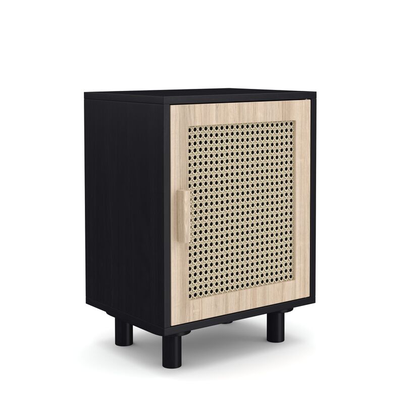 Dieses schicke Möbelstück lässt den Traum von urbanem Paradies wahr werden! Die schwarzen Holzelemente harmonieren wunderbar mit der hellen Tür aus Wienergeflecht. In der Kommode finden alle deine Schlafzimmerutensilien bequem Platz und auf der Ablagefläche kannst du Tischlampe und Zimmerpflanzen gekonnt arrangieren. Worauf wartest du noch? Mache aus deinem Schlafzimmer einen besonderen Ort mit diesem trendige Nachttisch ALDO in Natur/Schwarz!