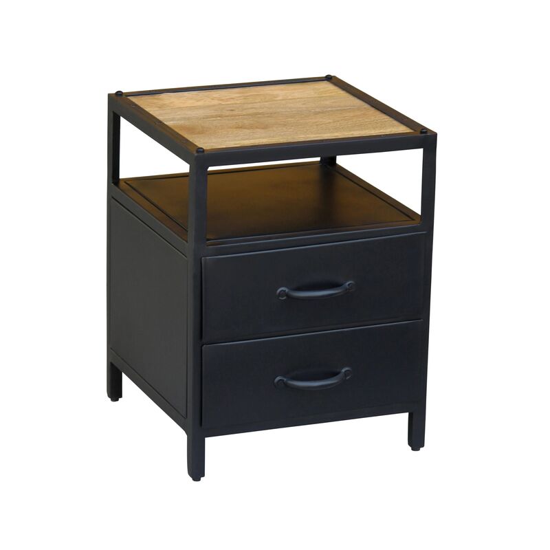 Der Nachttisch DIAZ überzeugt durch Funktionalität und einzigartiges Industrial-Design in schwarzem Metall. Es stehen dir zwei Ablageflächen zur Verfügung, damit sich Lampe, Wecker, Lesestoff und Wasserglas immer in Griffnähe befinden. Die Schubladen bieten viel Stauraum zur Aufbewahrung deiner persönlichen Gegenstände. Gib deinem Schlafzimmer mit diesem Metall-Nachttisch eine aussergewöhnliche Atmosphäre!