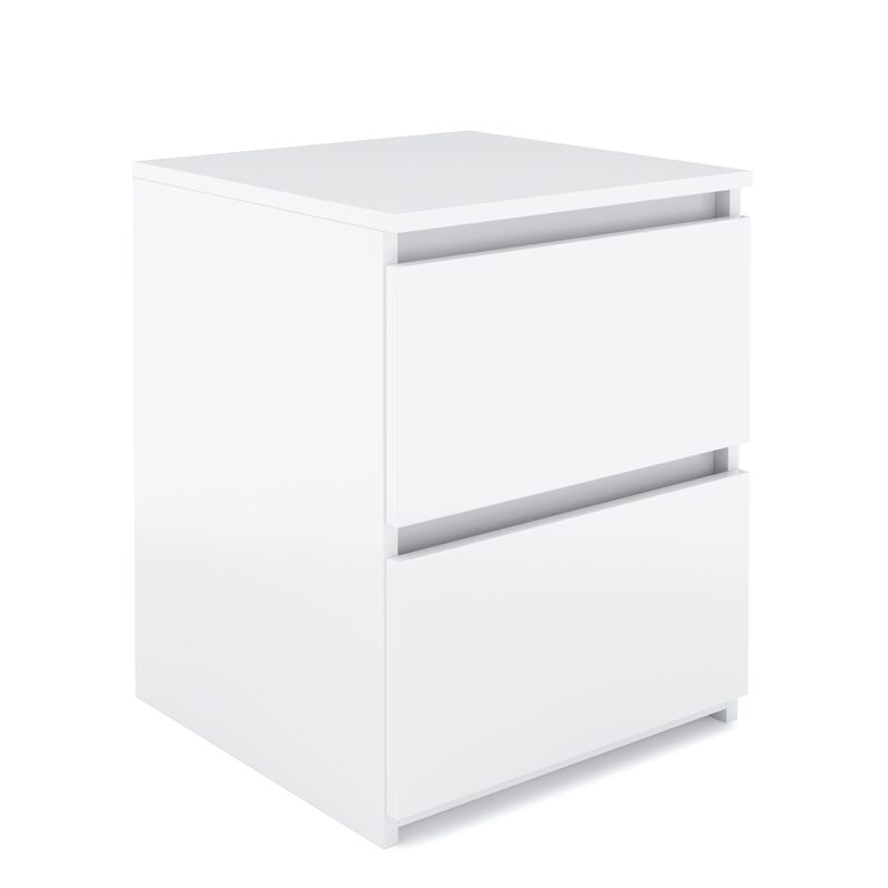 Diese Kommode sieht nicht nur schick aus, sondern bietet dir auch viel Platz, um alle deine Sachen zu verstauen. Die beiden Schubladen lassen sich ganz einfach ausziehen und schon kannst du deine Bücher, Comics und Zeitschriften verstauen. Das zeitlose Design aus robusten Spanplatten hellt jeden Raum auf und kann ganz einfach mit deinem Lieblingsbett kombiniert werden. Worauf wartest du noch? Richte dein Schlafzimmer ganz nach deinen Träumen ein mit diesem Nachttisch TALA in freundlichem Weiss!