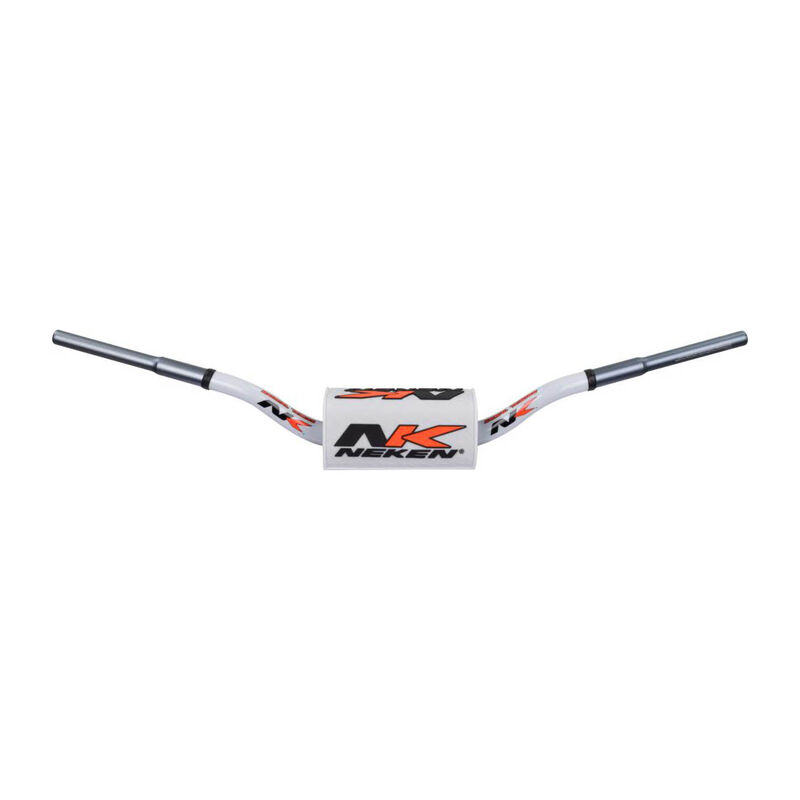 NEKEN SFH OVERSIZE LENKER SFH-Smooth Feeling Handlebar, der neuste 28,6mm Lenker von Neken. Durch dünnere Lenkerenden können spezielle Neken-Griffgummis, die doppelt so dick wie ein herkömmliche Griffgummis sind, montiert werden. Obwohl doppelt so dick, haben die Neken-Griffgummis genau den gleichen Aussendurchmesser wie ein normaler Griff. Durch die dickeren Griffgummis erreicht man jedoch eine deutliche Verringerung der Vibrationen, mehr Komfort und weniger Ermüdung der Hände. Ausserdem wurde die Festigkeit des Lenkers durch die dünneren Enden nicht beeinträchtigt, da die Last auf einen Lenker näher an den Lenkerhalterungen und nicht an den Lenkerenden liegt. Die spezielle Gasgriffhülse und die passenden Griffgummis sind unter Zubehör zu finden. Eigenschaften: * Muss mit Neken Gasgriffhülse und Griffgummis gefahren werden * 7010 T6 Aluminium, Weltraum Qualität * Oversize, konstruiert mit variablem Durchmesser und variabler Wandstärke * Durchmesser 28,6 mm an der Befestigungsstelle * 40% leichter und stabiler als ein normaler Lenker * Laser Beschriftung zur besseren Zentrierung und Ausrichtung des Lenkers * Gerändelt auf der Kupplungsseite, so hält der Griffgummi besser * Farbiges Extra High-Density Lenkerpolster inklusive MASSTABELLE, IN MM LENKER BREITE (A) HÖHE (F1) SWEEP (H) tief 820 110 73 Lenker, guidon, länker, handlebar, motocrosslenker, 28mm