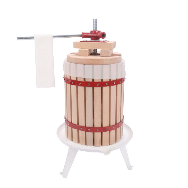Selbstgemachtes schmeckt einfach besser! Mit dieser originellen Obstpresse kannst du deine Äpfel, Trauben oder Beeren aus dem Garten ganz einfach selbst pressen und zu leckeren Säften oder Wein verarbeiten. Die Presse mit 18 Liter Fassungsvermögen ist aus Naturholz gefertigt und mit einer cleveren Spindelkonstruktion ausgestattet, die für ausreichenden Pressdruck sorgt. Du kannst das Küchengerät mittels Hebel manuell bedienen. Die mitgelieferten Presstücher sorgen dafür, dass Schalenreste und grobe Stücke aufgefangen werden. Setze auf Manpower und Selbstgemachtes mit dieser Beerenpresse im Vintage-Stil!