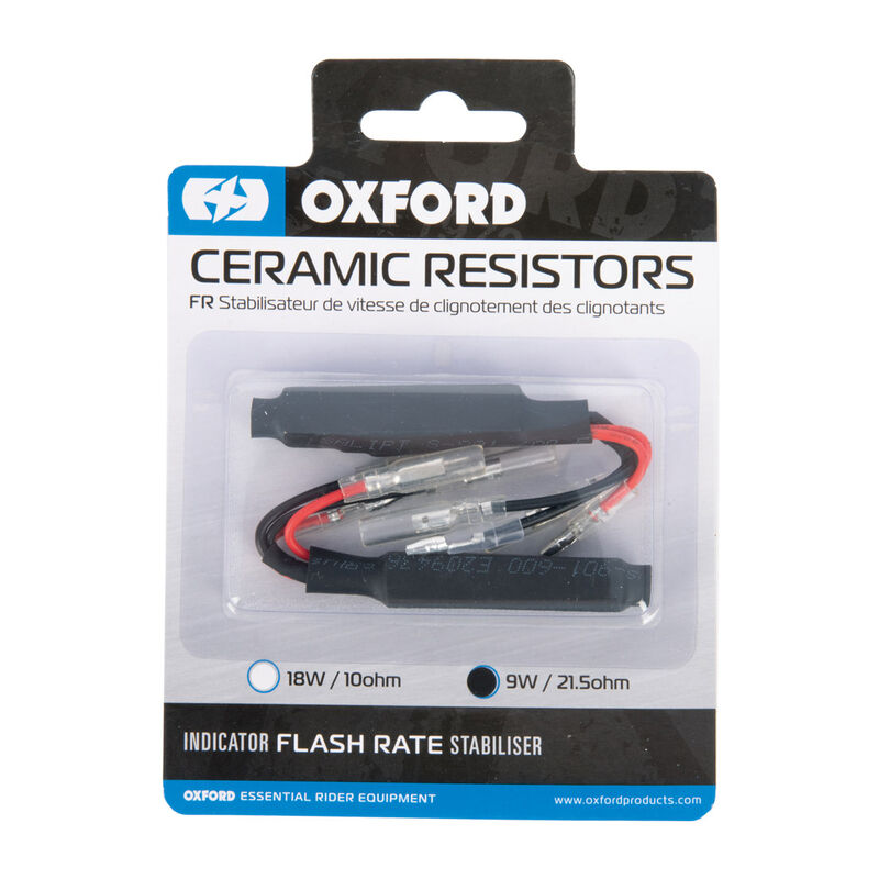 Wenn Ihre LED-Blinker zu schnell blinken, dann montieren Sie Oxford Lastausgleichs-Widerstände. Hauptmerkmale * Stabilisiert die Blinkrate der LED-Blinker * Einfach zu montierende Bullet-Anschlüsse * Arbeitet mit Glühbirnen-Blinkern mit geringer Leistung * 9 Watt/21,5 Ohm Keramik-Widerstände (9W@14V) * 18 WATT Version verfügbar (EL320) BY_OXFRDGHBHRUPDT,oxford,oxford motorrad,oxford products,oxford töff,oxford bike,blinker,tuning blinker,nachrüst blinker,umbau blinker,caferacer blinker,custom blinker,singnal lights,clignotant,lampeggiatore,blinker zubehör,blinker material,blinker relais,blinker widerstand,blinker kabel,blinker verbindung,blinker montieren,blinker montageplatte