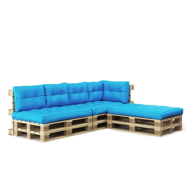 Gartensofa aus Holzpaletten mit türkisfarbenen Kissen