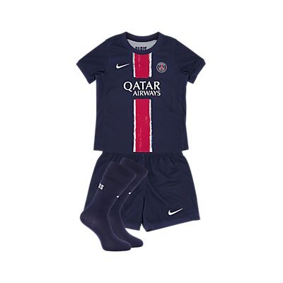 Rüste deine zukünftigen Nachwuchstalente mit dem dreiteiligen Fussballset von Paris Saint-Germain aus. Das Set ist von der Spielkleidung der Profis inspiriert und umfasst ein Trikot, passende Shorts und Socken. Hergestellt aus schweissableitendem Material, sorgt es dafür, dass sich die jungen Sportler beim Spielen, Toben und Rennen stets wohlfühlen.