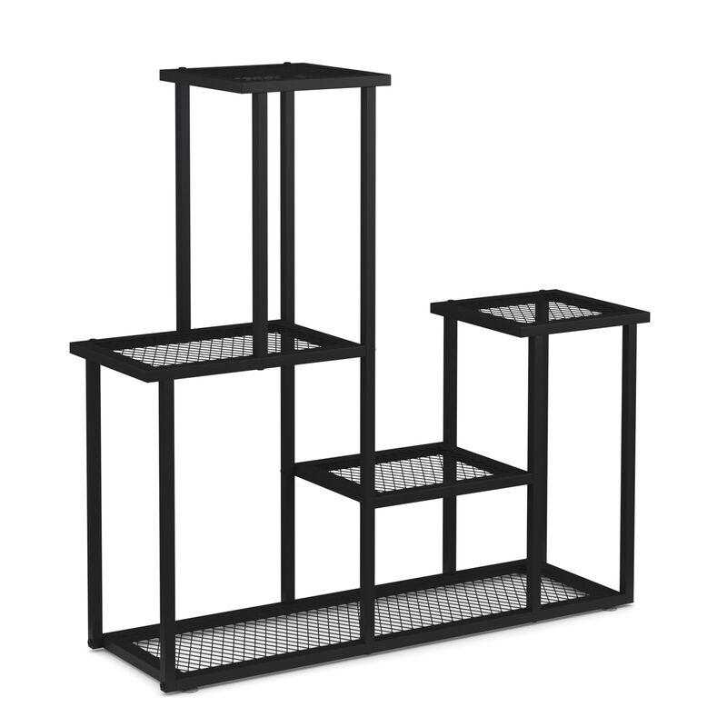 Ein Regal für alle, die Pflanzen lieben. Auf dem dekorativen Metallregal kannst du deine Pflanzen hübsch arrangieren und ihnen optimale Bedingungen zum Wachsen bieten. Dank der Gitterstruktur der Regalflächen fliesst das Giesswasser ab und kann einfach aufgewischt werden. Die clevere Anordnung der Ablagen sorgt für eine stimmige Optik und dafür, dass alle Pflanzen ausreichend Licht erhalten. Worauf wartest du noch? Hole dir ein Stück Natur ins Haus mit diesem ästhetischen schwarzen Pflanzenregal 91 x 25 x 83.5 cm!