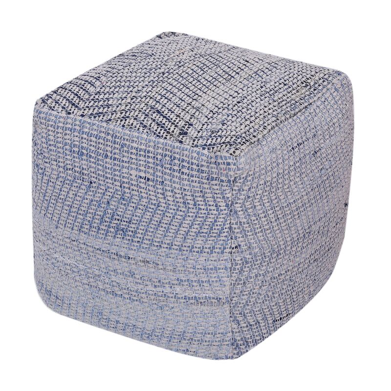 Der würfelförmige Pouf ist praktisch und dekorativ. Du kannst ihn flexibel dort einsetzen, wo du ihn gerade benötigst. Er kann als Sitzgelegenheit genutzt werden oder zum entspannten Hochlagern der Füsse. Das blau-weisse Denimgewebe sorgt für eine attraktive Optik und macht das Sitzkissen zum Blickfang in deinem Wohnzimmer. Komplettiere deine Einrichtung mit diesem mobilen und komfortablen Hocker!