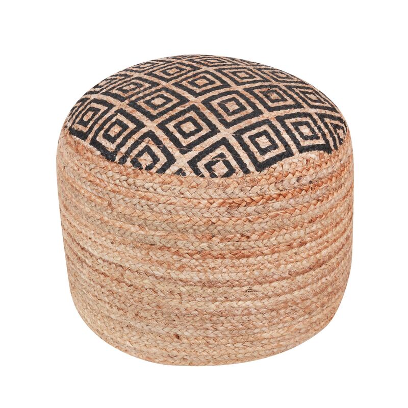 - Pouf aus geflochtener Jute mit einzigartigem Print in Schwarz
