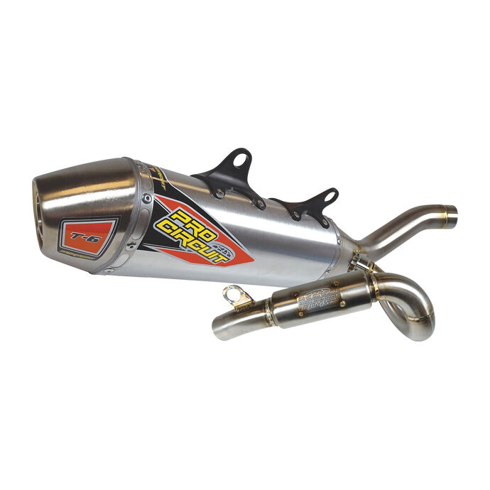 PROCIRCUIT T-6 EDELSTAHL AUSPUFFANLAGE Ti-6 PRO, Ti-6 und T-6 Auspuffanlagen * Entwickelt, um Leistung und Kraft gegenüber früheren Systemen zu verbessern. * Das ideale System für jeden Fahrer oder Rennfahrer, der nach verbesserter Leistung, Haltbarkeit und einem professionellen Aussehen sucht. * Ti-6-Doppelauspuffanlagen verfügen über eine Titankonstruktion im gesamten Endrohr, Y-Kollektor-Mittelrohr und Schalldämpfer und sind mit Endkappen aus Titan oder Kohlefaser erhältlich. * Ti-6- und T-6-Anlagen verfügen über einen abnehmbaren USFS-Funkenfänger, der einen einfachen und schnellen Wechsel zwischen Rennstrecken- und Offroad-Fahrten ermöglicht. * Ti-6-Systeme sind durchgehend aus Titan gefertigt und verfügen über eine Endkappe aus Kohlefaser. * T-6-Systeme sind durchgängig aus Edelstahl gefertigt und verfügen über einen Aluminium-Schalldämpfer. * Bearbeitete Aluminium-Schalldämpferhalterungen für erhöhte Festigkeit und Haltbarkeit. * Asymmetrische Schalldämpferkonfiguration für ein grösseres Packvolumen. * Die meisten Systeme sind mit einer RC-4-Resonanzkammer für reduzierte Schallabgabe ausgestattet. * Bearbeitete Verbindung zwischen Mittel- und Endrohr für eine bessere, optimale Passform. * WIG-Präzisionsschweissung * Funkenfänger für H- und FP-Versionen nicht enthalten PC-0152245G,ProCircuit T-6 Edelstahl Auspuffanlage,EXHAUST T6 KTM/HUS450 ‘23,0152245G,0152245G,18202020,Auspuffanlage,Komplettanlage,Auspuffsystem,Exhaust,Silencer,Uspuff,Topf,BY_LKROITU Passend auf: HUSQVARNA FC450 KTM 450 SX-F