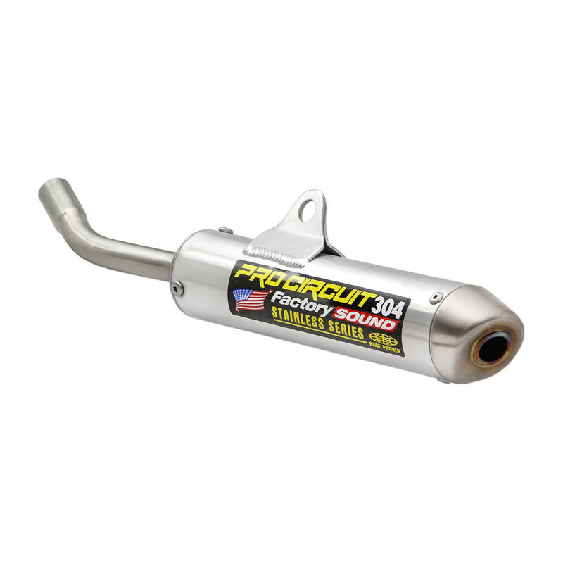 PROCIRCUIT 304 SCHALLDÄMPFER Die lange Bauweise des 304 Schalldämpfers träg zur Lärmreduzierung bei und wird für alle 2-Takter empfohlen. Passt auf Pro Circuit Krümmer und auf die meisten Originalkrümmer. Die Fertigung aus Aluminium und Edelstahl macht den 304 enorm leicht und bei Bedarf einfach neu zu stopfen. FEATURES: * Mehr Leistung im oberen Drehzahlband * 304 Edelstahl-Einlassrohr * Doppelwandige Halter * Gehäuse aus 6061 T-6 gebürstetem Aluminium * Dämmwolle aus E-Glass für maximale Haltbarkeit * Made in USA Auspuff,Schalldämpfer,Slipon,Dämpfer,Silencer,Muffler,ProCircuit,Slip-On,End-Pipe,Endschalldämpfer, Passend auf: YAMAHA YZ85