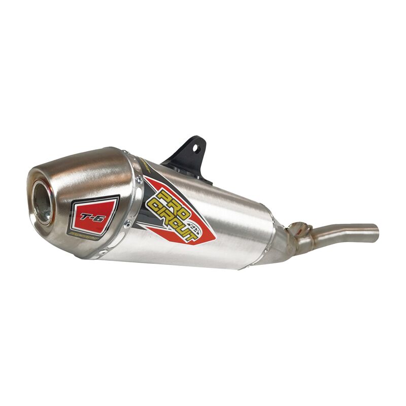 PROCIRCUIT SCHALLDÄMPFER T-6 Der T-6 Stainless Slip-On Schalldämpfer wurde für Fahrer entwickelt, die einen preisgünstigen, einfach zu installierenden und langlebigen Schalldämpfer suchen, der auf den Serienauspuff geschraubt werden kann. Dieser Slip-On-Schalldämpfer kommt mit einer Endkappe aus Edelstahl und einem Aluminium-Schalldämpferfür erhöhte Haltbarkeit. Obwohl der T-6 Stainless Slip-On nicht die FIM-Soundanforderungen erfüllt, die im professionellen Rennsport in den USA oder in Europa gelten, ist der T-6 Stainless Slip-On eine grossartige Option für jeden Fahrer, der eine Leistungssteigerung für ein kleines Budget sucht. Ein abnehmbarer, USFS-zugelassener Funkenfänger wird mit diesem Slip-On geliefert, um es dem Fahrer zu erleichtern, zwischen Off-Road- und Closed-Course-Rennen zu wechseln. Für die 2024er Modelle wurde eine Gummilagerung in die Halterung eingefügt, um ein mögliches Brechen des Hilfsrahmens zu verhindern. Merkmale: * Verbessert die Leistung * Endkappe aus rostfreiem Stahl * Aluminium-Kanisterkonstruktion * Bearbeitete Aluminium-Schalldämpferhalterung für erhöhte Festigkeit und Haltbarkeit * Asymmetrische Schalldämpferkonfiguration für grösseres Packvolumen * Abnehmbarer USFS-zugelassener Funkenschutz * Halterung aus Gummi * TIG-Präzisionsgeschweisst * Hergestellt in den USA. PC-0132345A,ProCircuit Schalldämpfer T-6,MUFFLER T6 YZF450 -23,0132345A,Schalldämpfer T-6,Auspuff,Schalldämpfer,Topf,Flöte,Dämpfer,Exhaust,Slipon,4Takt,echappement,quiet exhaust Passend auf: YAMAHA YZ450F