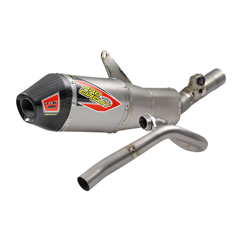 PROCIRCUIT TITAN TI-6 PRO AUSPUFFANLAGE Die Ti-6 Pro Titan Auspuffanlage wurde zur Leistungsoptimierung entwickelt. Der Krümmer, der Y-Mittelteil und das Schalldämpfergehäuse sind aus Titan und die Endkappe ist aus Carbonfaser gefertigt. Optimiert die Leistung, wo die Ti-5 Abgasanlage Schwächen aufwies. Und ganz nach den Wünschen unserer Kunden wurde ein charakteristischer Klang entwickelt, der zum modernen Fahrer passt. Die Ti-6-Pro Anlage wurde speziell für professionelle Fahrer entwickelt und erfüllt die FIM Geräuschvorschriften. Dafür ist der Ti-6 Pro ohne Funkenfänger ausgestattet. FEATURES: * Gesteigerte Leistung * Y-Mittelteil und Schalldämpfer aus Titan, Endkappe aus Carbonfaser * RC-4 Resonanzkammer zur Lärmreduzierung * TIG geschweisst * Gefräste Verbindung zwischen Mittelteil und Krümmer für eine optimale Passform ohne Leckagen * Aluminium-Halter * FIM Zugelassen ProCircuit,komplett auspuffanlage,motorrad auspuff,echappement moto,scarico moto,töff auspuff,motorrad schalldämpfer,auspuff komplettsystem Passend auf: HONDA CRF450R