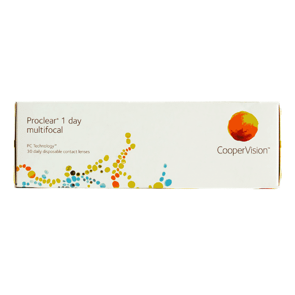 Proclear 1-Day Multifocal Kontaktlinsen sind multifokale Eintages-Kontaktlinsen und werden von CooperVision hergestellt. Proclear 1-Day Multifokallinsen sind entworfen, um zwei gemeinsame Probleme zu lösen: Alterssichtigkeit und Augentrockenheit. Die patentierte PC Technologie Proclear 1 day multifocal besteht aus einem einzigartigen Linsenmaterial und speichert Feuchtigkeit den ganzen Tag lang! Proclear 1 Day Multifcoal Tageslinsen beseitigt das mühsame Reinigen, den Kauf von Kontaktlinsen-Lösungen und bietet eine gesunde Lösung für das Leiden von Augenallergien. Proclear 1-Day Multifocal Kontaktlinsen sind bis zu einer Addition von +2.00 D zu tragen.