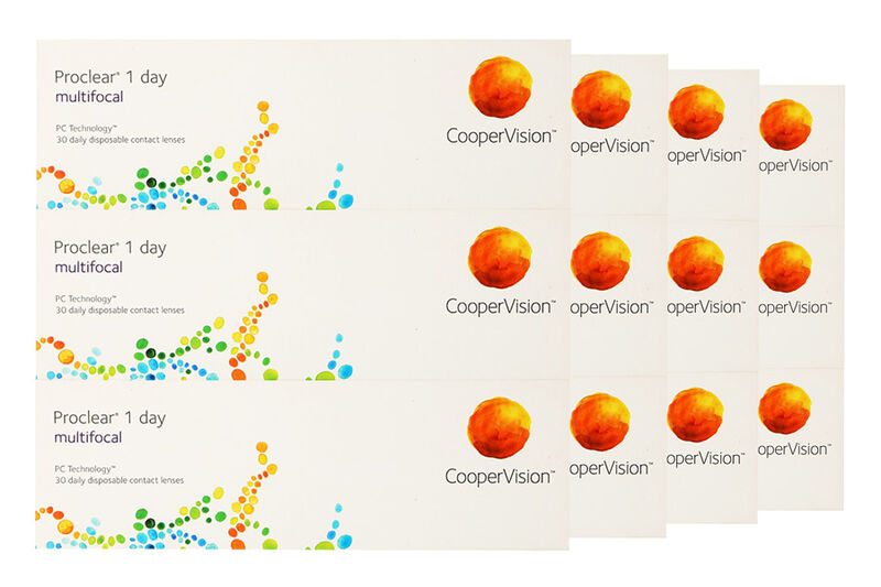 Proclear® 1 day multifocal sind multifokale Eintages-Kontaktlinsen und werden von CooperVision hergestellt. Proclear® 1 day Multifokallinsen sind entworfen, um zwei gemeinsame Probleme zu lösen: Alterssichtigkeit und Augentrockenheit.