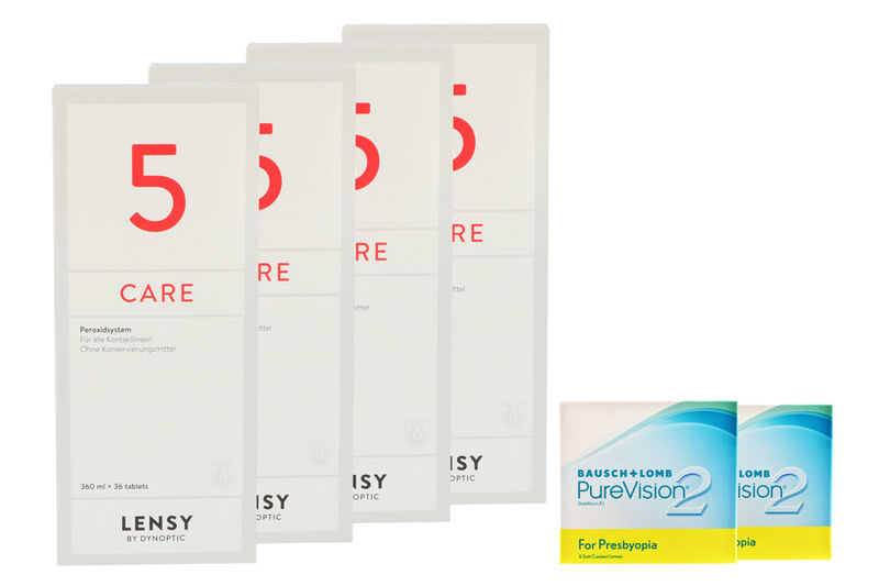 Pure Vision 2 HD For Presbyopia 2 x 6 Monatslinsen + Lensy Care 5 Halbjahres-Sparpaket
