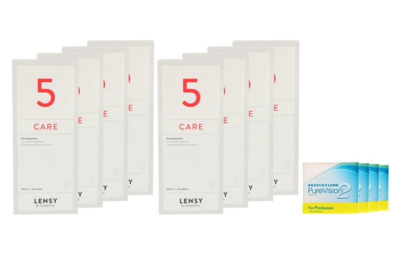 Pure Vision 2 HD For Presbyopia 4 x 6 Monatslinsen + Lensy Care 5 Jahres-Sparpaket