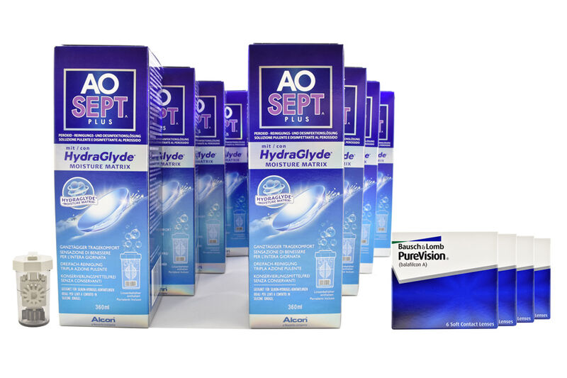 Pure Vision 4 x 6 Monatslinsen + AoSept Plus HydraGlyde Jahres-Sparpaket
