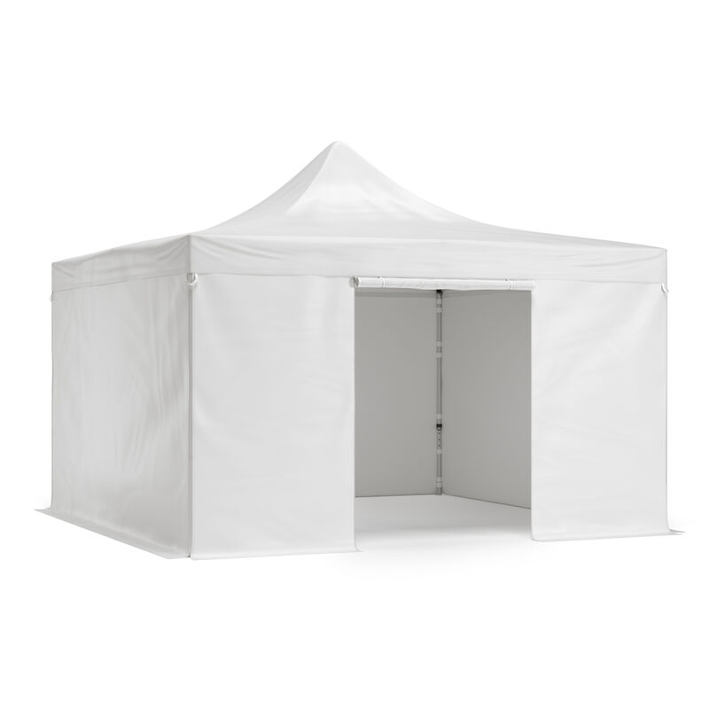 Egal ob Sonne, Regen oder Schnee – mit diesem faltbaren Pavillon präsentieren Sie Ihr Unternehmen von der besten Seite. Unter der geräumigen Zeltplane aus robustem Kunststoff finden all Ihre Ausstellungsgegenstände und Stehtische Platz. Das Zelt lässt sich einfach und schnell aufbauen und ist komplett abschliessbar. Das solide Gestell aus Aluminium ist wetterfest und hält auch Regenschauer und leichten Schneefall ab. Zeigen Sie Innovation und eine erfrischende Corporate Identity mit diesem Partyzelt 4 x 4 m aus PVC!