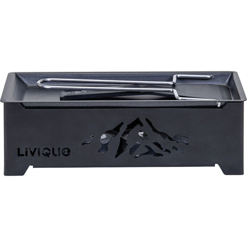 Raclette mit Rechaudkerzen – Raclette-Gerät Cheese – Stahl – B 18.5 T 9 H 6.2 cm – Set 8-teilig: 1x Rechaud aus Stahl, beschichtet, 1x Raclettepfannchen, antihaftbeschichtet, 1x Spachtel aus Kunststoff, 4x Rechaudkerzen, 1x Tasche aus Leinen und Jute
