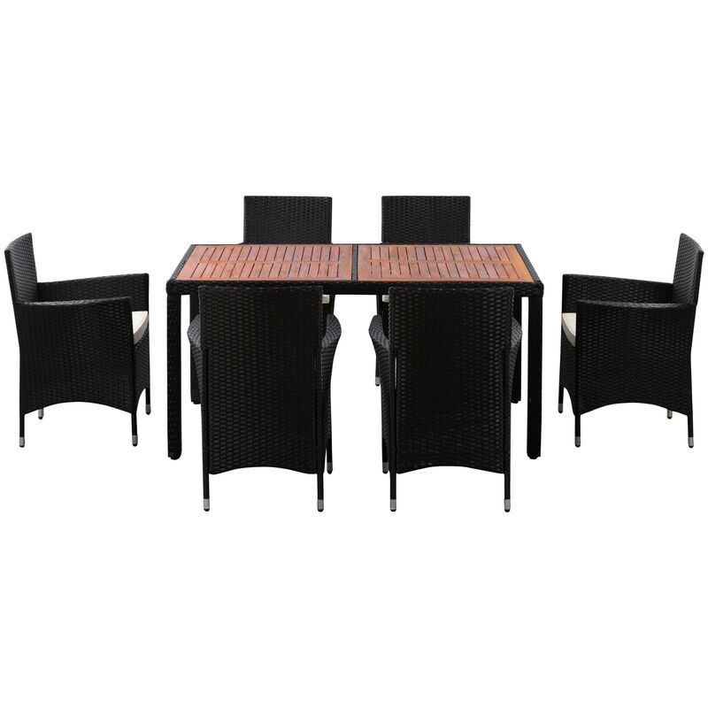 Diese stilvolle Rattangarnitur fügt sich perfekt in deinen Garten oder deine Terrasse ein. Die Tischplatte ist aus wunderschönem Akazienholz und verleiht der Gartenlounge das gewisse Etwas. Dank dem pulverbeschichteten Stahlrahmen ist die Garnitur robust und langlebig. Die Polsterkissen sind sehr pflegeleicht und wasserabweisend. Gönne dir eine gute Zeit mit deiner Familie und Freunden auf dieser tollen Sitzgruppe!