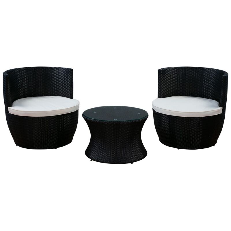 Diese clevere Rattangarnitur aus PE Rattan lässt sich platzsparend stapeln und sieht auch dann noch stylisch aus. Das Gartenmöbelset besteht aus zwei Sesseln mit bequemen Sitzkissen und einem runden Tisch. Die Kissenbezüge sind mit einem Reissverschluss versehen und wasserabweisend. Zum hübschen Tisch gehört eine runde Glasplatte welche das schöne Design abrundet. Geniesse schöne Stunden mit dieser cleveren Rattangarnitur MANHATTAN!