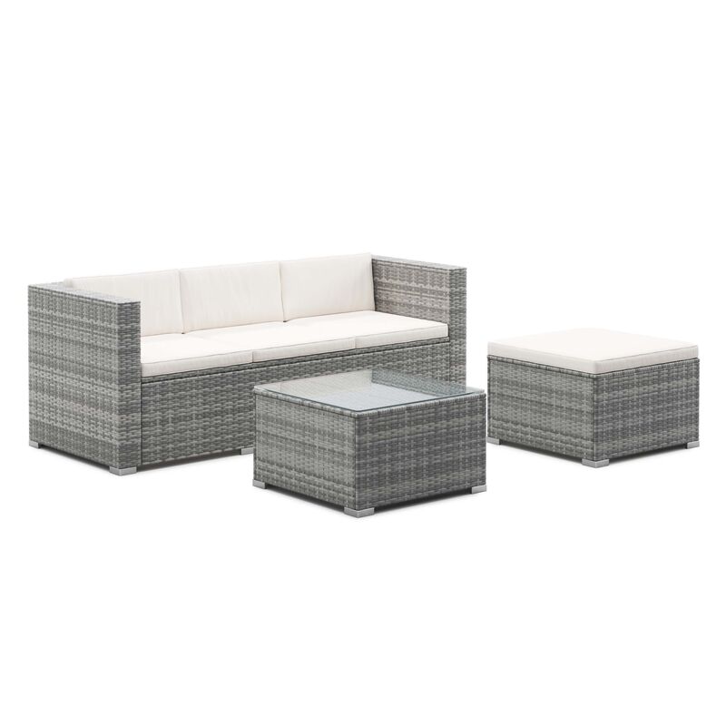 Diese Lounge für den Aussenbereich überzeugt mit einer hochwertigen Verarbeitung. Das Polyrattan ist langlebig und witterungsbeständig. Dank dem praktischen Tisch mit Glasplatte haben Sie eine Ablagefläche für Kaffee und sommerliche Drinks. Nutzen Sie die Ottomane als zusätzlichen Sitzplatz oder um die Füsse hochzulegen. Verwandeln Sie mit dieser Rattanlounge Ihren Garten in Ihre persönliche Wohlfühloase!
