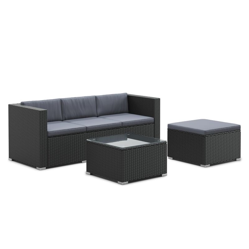 Diese elegante, schwarze Gartenlounge lässt sich vielseitig kombinieren und darf auf keinem Gartensitzplatz fehlen! Das robuste, hochwertige Rattangeflecht eignet sich bestens für den Outdoorbereich und die weichen Kissen sind mit wasserabweisenden Kissenbezügen ausgestattet. Ein besonderes Plus sind zudem der flexibel arrangierbare Sitzhocker und der stilvolle Gartentisch. Geniessen Sie einen entspannten Feierabendrink in dieser Rattanlounge NIZZA in zeitlosem Look!