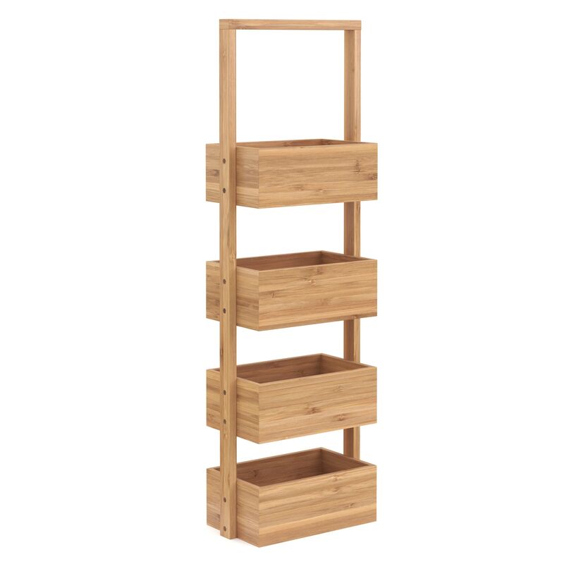 - Vier grosszügige Staufächer für Handtücher, Shampoo, WC-Papierrollen und mehr