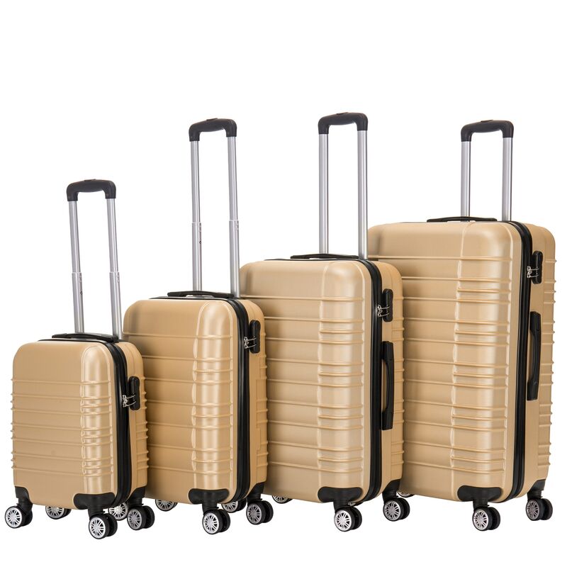 Ab in den Süden! Mit diesem luxuriösen Kofferset kannst du alle deine Sorgen zu Hause lassen und besonders komfortabel reisen. Mit den vier Grössen hast du alles dabei, was du für deine Ferien oder die Geschäftsreise brauchst. Die Rollkoffer mit Teleskophenkel sind robust gebaut und verfügen über einen modernen Kantenschutz. Dank dem eingebauten Zahlenschloss ist dein Hab und Gut zuverlässig vor Langfingern geschützt. Die glamouröse Farbe sorgt für einen besonderen Blickfang – damit du das Gepäck in den Kofferbergen garantiert wieder findest. Hole dir jetzt diesen handlichen Reisekoffer AVA im praktischen 4er Set!