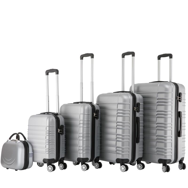 Reisen mit der ganzen Familie und praktisch verstaut alles mit dabei haben! Dank dem Set aus fünf Hartschalenkoffern in verschiedenen Grössen verpackst und beförderst du deine Habseligkeiten einfach und unkompliziert. Die seitlichen Haltegriffe, der verstellbare Teleskopgriff und das 360° drehbare Rollensystem machen dir dabei das Leben leichter. Der Kantenschutz und das integrierte Zahlenschloss sorgen dabei für den optimalen Schutz deines Gepäcks. Starte jetzt deine nächste Reise mit den verlässlichen, robusten Hartschalenkoffern im praktischen 5er-Set!