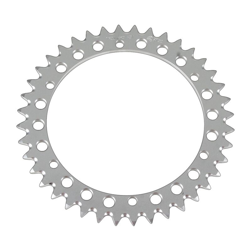 RENTHAL KETTENRAD ULTRALIGHT SELBSTREINIGEND, SILBER, 40 ZÄHNE Renthal UltraLight Kettenräder werden in Manchester, Grossbritannien, aus 7075 T6 Aluminium mit extrem engen Toleranzen CNC-gefräst und sind 66% leichter als Stahl. Am Computer entwickelt und getestet, um eine präzise Passform zu erreichen. Sowie hohe Konzentrizität und Lastverteilung mittels exakter Zahnprofilierung, dadurch wird eine maximale Kraftübertragung gewährleistet. Mit Renthals Kombination aus hochfestem Basismaterial, modernsten Fertigungsmethoden und aussergewöhnlichen, strapazierfähigen Oberflächen ist es klar, warum Renthals leichte Aluminium-Hinterradkettenräder an den Rädern von mehr Werksrennmaschinen zu finden sind als alle anderen konkurrierenden Marken zusammen. PASSENDE KATEGORIEN ZU DEINEM PRODUKT FINDEST DU HIER! [cat+]11101-1[cat-][cat+]11107-1[cat-][cat+]11104-1[cat-][cat+]30101-1[cat-]