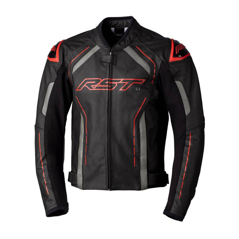 RST Lederjacke S1 CE, schwarz / Grey / rot, XXL