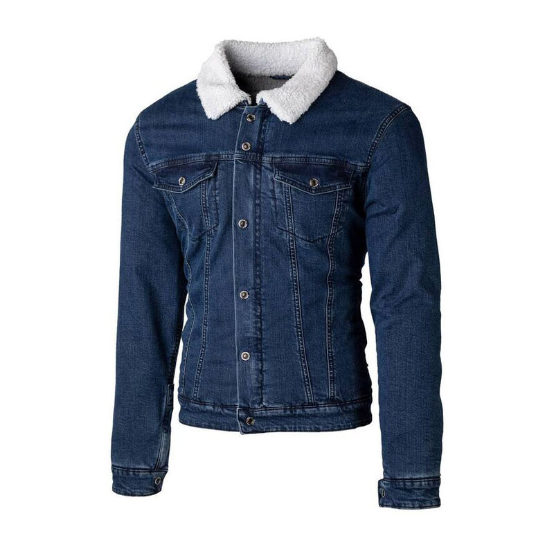 Ein klassisch gestyltes Denim-Kleidungsstück, ausgestattet mit Kevlar-Schutz und und innen mit Sherpa-Fleece gefüttert. Mit CE-geprüfter Panzerung an den Schultern und Ellbogen, eine echte Biker Jacke mit echtem Modestil. Gemischte Textilien,freizeitjacke,jagge,jacket,jaquet,giacca,blouson,casual,freizeitbekleidung,herrenjacke