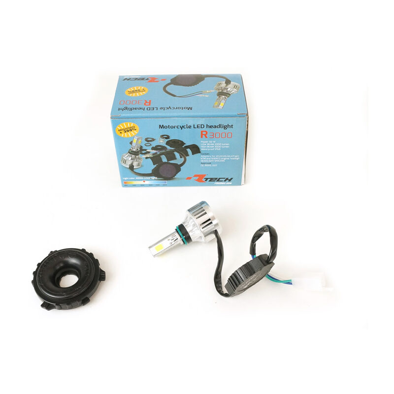 RTECH LED LAMPENFASSUNGEN KIT R3000, FÜR H1-H4, H7 Passend für die meisten Offroad Lampenmasken. Einfache Plug & Play Montage durch mitgelieferte Adapter. * Adapter für H1, H2, H3, H4, H7, KTM original und Sherco Lampenfassungen. * Leistung: 32W * Helligkeit: 3000 Lumen (Scheinwerfer) – 2200 Lumen (Abblendlicht) * Spannung: DC 9 Volt min. – 36 Volt max (12 Volt konstant) * Frequenz: 120 KHZ – 160 KHZ * Intensität: 3A * Abstrahlwinkel: 360 Grad * Zulassungen: CE, ROHS, DOT, E-MAKE * Betriebstemperatur: von -45 Grad C bis +105 Grad C * Wasserdicht: IP68 * Länge: 50.000 Erz * Lichtfarbe: 6000K (klares Licht) ACHTUNG: NICHT ZU VERWENDEN BEI KTM EXC 125 UND HUSQVARNA TE 125! Bei folgenden Modellen wird empfohlen das Plus direkt mit der Batterie zu verkabeln, dadurch werden die Hochspannungsschwankungen bei hoher Motordrehzahl vermieden: * KTM EXC 250-300 * Husqvarna TE 250-300 * Beta RR 250-300 LEDRTECH016,Rtech LED Lampenfassungen Kit R3000, für H1-H4, H7,R3000 Kit für H1-H4 H7 KTM HSQ Beta und TM Lampenfassungen,8057094164219,R-LEDRTECH016,Lampenmaske,frontlampe,endurolampe,scheinwerfer,enduroscheinwerfer,headlight,highbeam,led kit, led umrüsten,rücklicht,stoplicht,taillight,hecklicht,custom stoplicht,Feu arrière,Drita e pasme,Fanale posteriore,Luz de la cola