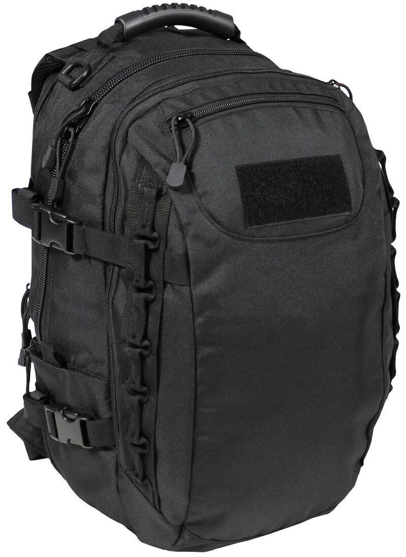 verstellbare, gepolsterte Tragegurte verstellbarer Brust- und Beckengurt gepolstertes Rückenteil mit Tasche mit 2-Wege Reissverschluss, gepolstertem Einschubfach und Öffnung oben für Trinkschlauch zusätzlich oben kleiner Riemen mit Klickverschluss 1 Tragegriff oben mit 2 seitlichen D-Ringen 1 grosses Hauptfach mit 2-Wege RV, 1 Netzfach mit RV und 1 Einschubfach zusätzlich oben kleiner Riemen mit Klickverschluss unten kleine Öse für Ablauf von Wasser u.ä. 1 kleines Hauptfach mit 1 Karabinerhaken und diversen Taschen, Einschüben sowie Stifthaltern 2 kleine, mit Reissverschluss verstellbare Seitentaschen mit Klettverschluss je 1 Kompressionsriemen an den Seitentaschen Front mit kleiner RV-Tasche, diversen seitlichen Schlaufen und Klettflauschpatch ca. 10 x 5 cm Fassungsvermögen: ca. 30 l Masse: ca. 30 x 47 x 20 cm (B x H x T) Gewicht: ca. 1,5 kg Material: 100 % Polyester 900 D